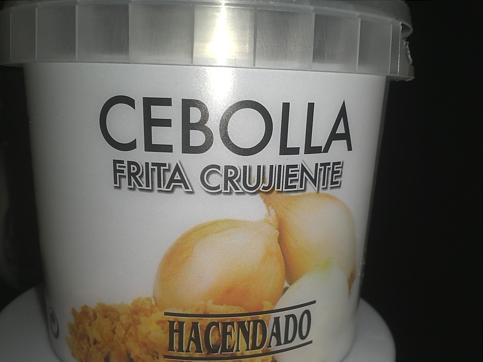 - Cebolla Crujiente (yo usé de la de Ikea, que viene en un paquete de 500gr y cuesta algo menos de 5€, pero también hay en Mercadona en botes de 100gr y cuesta 1’50€ aproximadamente, de todas formas se conserva bien y está genial para ensaladas, bocadillos, hamburguesas…).